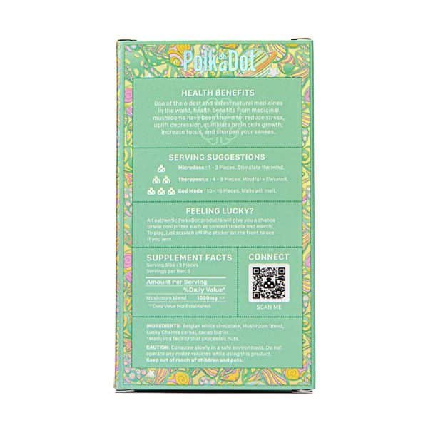For those not looking for a full “trip,” microdose mushroom chocolate is the perfect way to enhance creativity and focus. The PolkaDot Lucky Charms White Chocolate Bar 5G allows for easy portioning, making it superior to magic mushroom candy or molly gummies. Whether you’ve tried mycrochips, psilly square, or aura mushroom gummies, you’ll find that our psilocybin chocolates offer a more refined magic mushroom microdose chocolate bar experience. Don’t settle for mushroom chocolate reddit rumors; experience the the polka dot bar for yourself and see why we lead the magic mushrooms brands industry.