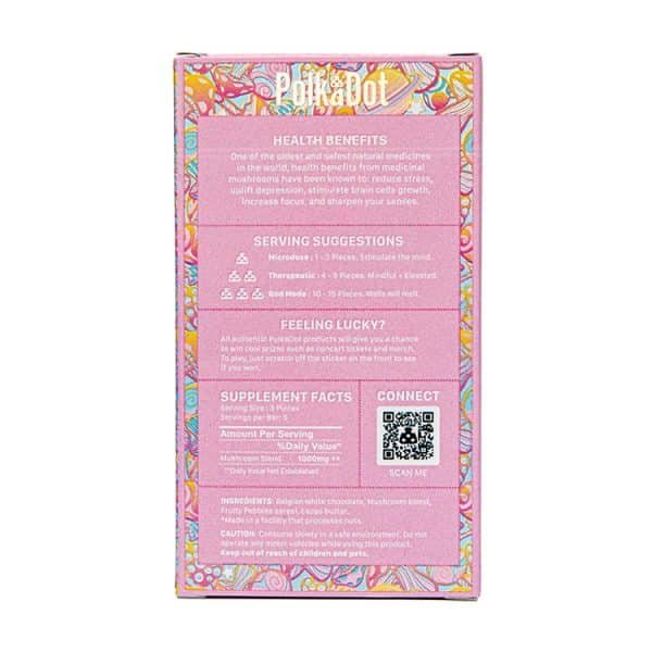 Experience the smooth, velvety texture of our PolkaDot Milk Belgian Chocolate 5G. This isn't just a snack; it’s a sophisticated mushroom chocolate bar crafted with authentic Belgian cocoa. Many newcomers to the scene begin their journey by asking, "what is mushroom coffee?" or exploring organic coffee alternatives like four sigmatic. However, the polkadot chocolate experience offers a richer, more profound way to enjoy a magic mushroom blend. While four sigmatic mushroom coffee or lion's mane mushroom coffee is great for a morning boost, our mushroom chocolate bars provide a dedicated space for relaxation and deep exploration.